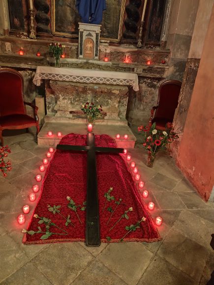En ce vendredi Saint 3 avril 2026, sous la direction de Marie Léria, la communauté catholique de Pietra di Verde, a commémoré la Passion du Christ, en parcourant le chemin de Croix, matérialisé à l’intérieur de l’église, par les quatorze stations qui symbolisent les moments les plus importants de la Passion du Christ.