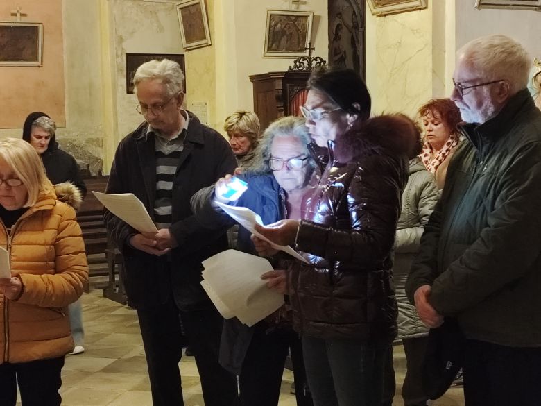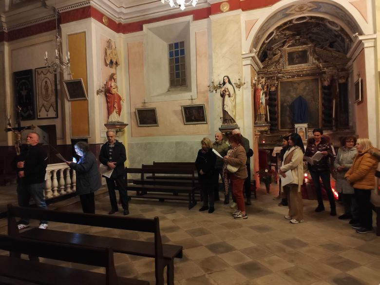 Précédé par la Croix portée par Pierre suivi par les fidèles, à chaque station, l’un d’entre eux a lu, devant un tableau qui décrit l’événement, un petit texte explicatif, suivi de prières et du chant « Vive Jésus vive sa croix ».