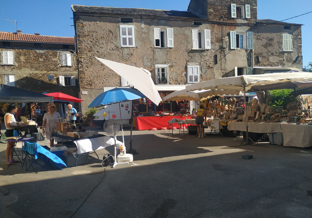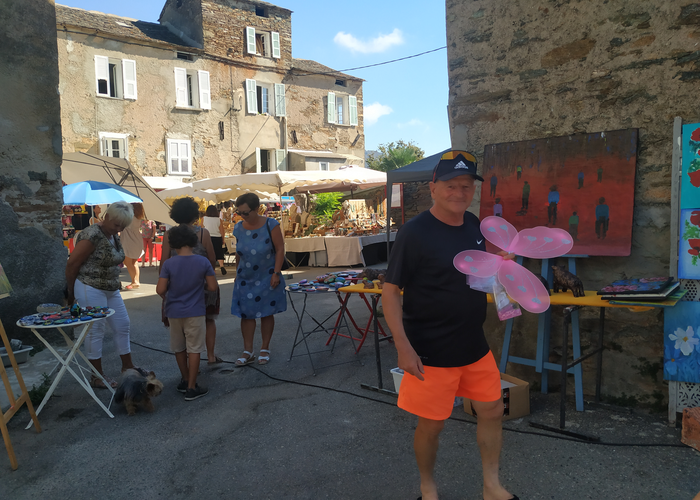 Samedi 6 août dès 9 heures, Jean-Baptiste SANTELLI maire de la commune allait occuper l’espace entre la place SANTELLI et la place de la Fontaine. Non loin de lui, Marlène CIMA conseillère municipale, responsable de l’organisation et du déroulement de la foire, s’activait auprès des exposants qui finissaient de s’installer.