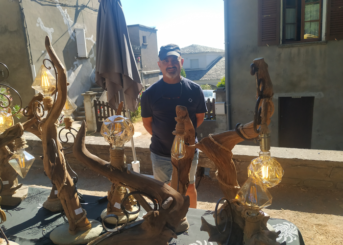 On trouve ainsi, comme ce fut le cas l’an dernier, les lampes en bois-sculpté, de Jean-Marc TORACCA. Un style d’une grande originalité qui ne laisse pas indifférent, chaque pied de lampe étant une création unique.