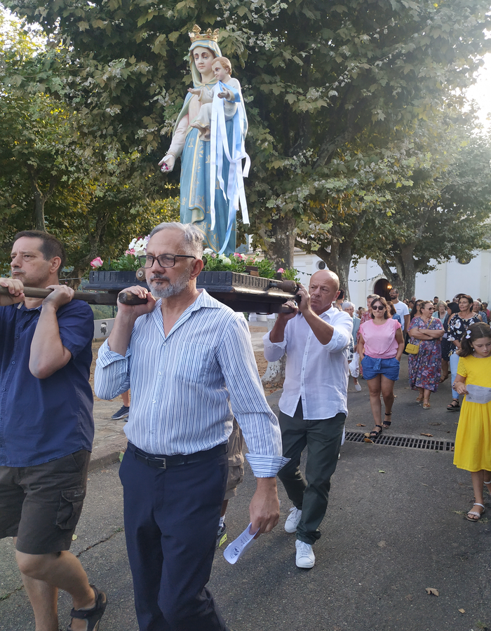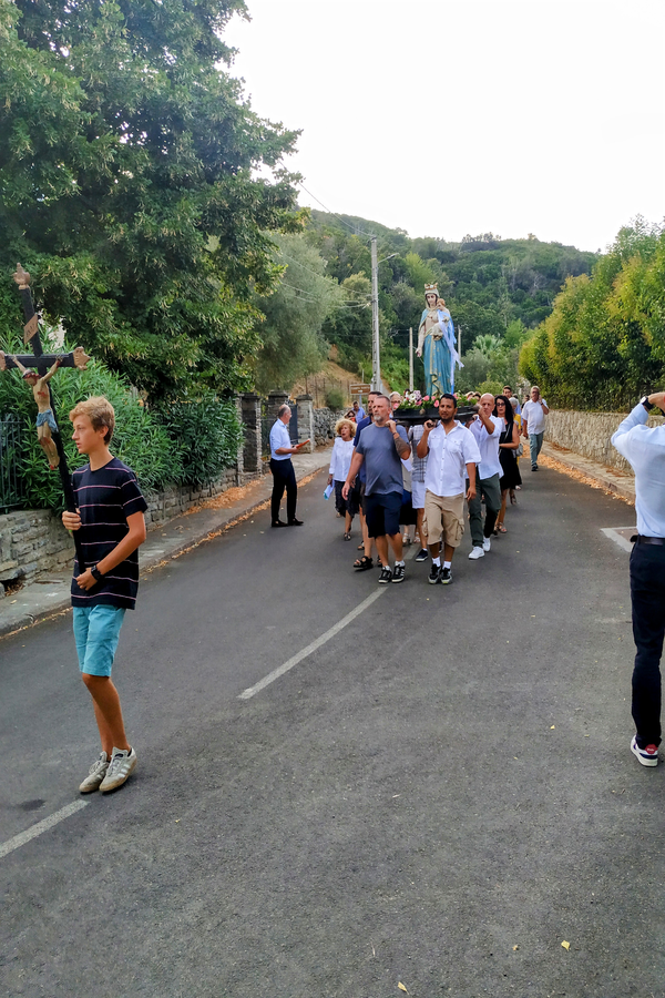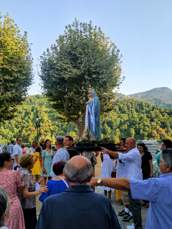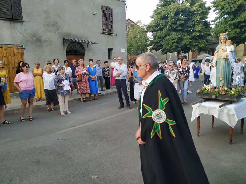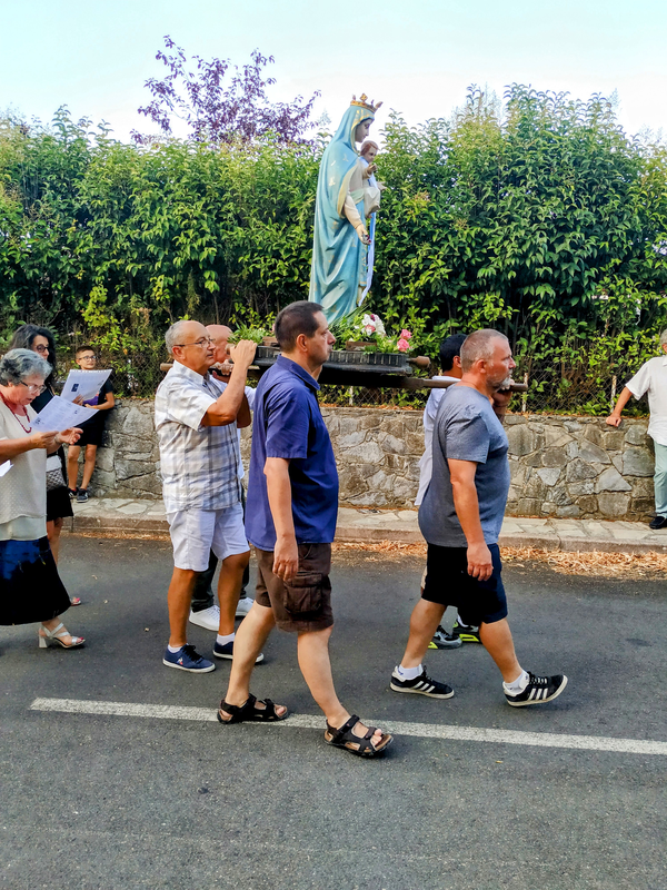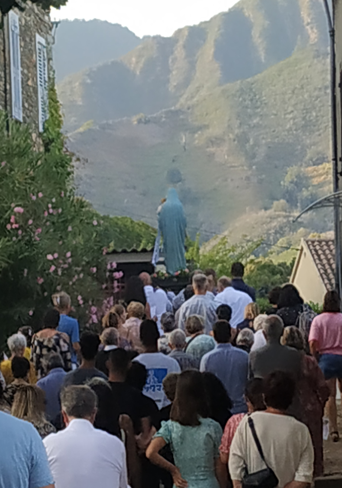 Après la messe célébrée par le Père LUC curé de la paroisse, ce sera le rituel de la procession en hommage à la Vierge Marie, une marche de recueillement et de prière à travers le village, une marche dans laquelle se retrouvent dans une même communion, croyants et non croyants, appartenant à une même communauté de vie.