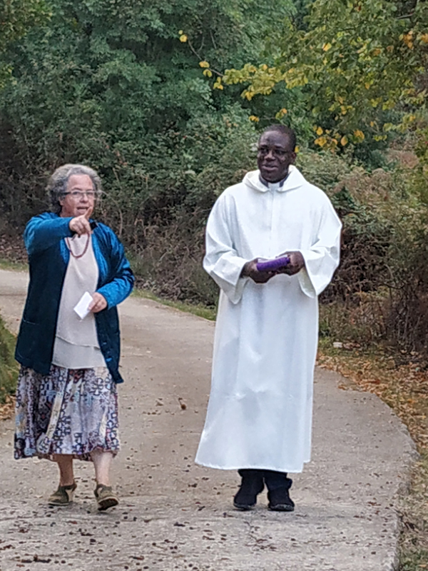 Père LUC et Marie-Leria en chemin vers le cimetière