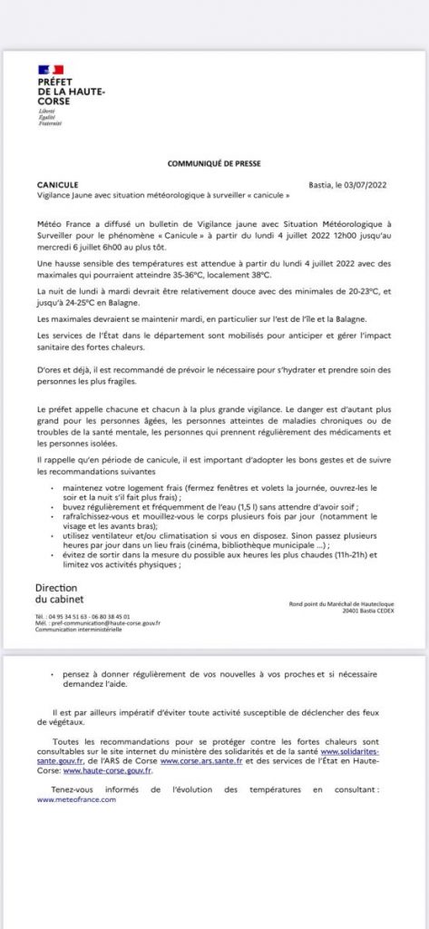 Suite à l’annonce par météo France d’un épisode de vent violent, les préfectures de Haute Corse et de Corse du sud interdisent l’usage du feu du vendredi 4 novembre au dimanche 6 novembre....